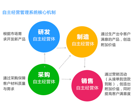 以產業(yè)鏈明星企業(yè)發(fā)展戰(zhàn)略為導向,以優(yōu)化與提升各產業(yè)鏈環(huán)節(jié)公司的經營管理為手段,以打造中華民族一流的產業(yè)鏈為使命,幫助中小企業(yè)實現短期突破成長瓶頸、中期上市融資、長期可持續(xù)增長的目標。為給企業(yè)提供面向全決策鏈優(yōu)化的管理咨詢服務,從而全面、快速與穩(wěn)定地提升運營效率與經營業(yè)績,本著針對性、創(chuàng)新性、系統性和可實施性的原則,設計與構建了“企業(yè)戰(zhàn)略定位、文化體系建設、組織能力提升”三位一體的經營管理體系。