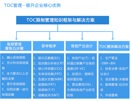 TOC是一套管理理念與管理工具的結合,它把企業(yè)在實現其目標的過程中現存的或潛伏的制約因素稱為“約束”,通過逐個識別和消除這些約束,使得企業(yè)的改進方向和改進策略明確化,從而達到幫助企業(yè)更有效地實現其目標的目的。通過建立與實施TOC管理模式,持續(xù)推進與貫徹落實自主經營管理,促進企業(yè)管理標準化、簡單化、高效化,實現內部管理的持續(xù)改善。在文化層面,尊重激勵員工發(fā)揮潛能,打造并維持持續(xù)改進的文化;在人才培養(yǎng)層面,培養(yǎng)和提升員工技能,讓其成為員工成長及交流的平臺。